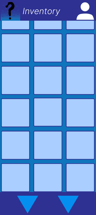 Inventory would display all the items the player holds in their inventory, their inventory is reset between game except for one item which connects the games together.